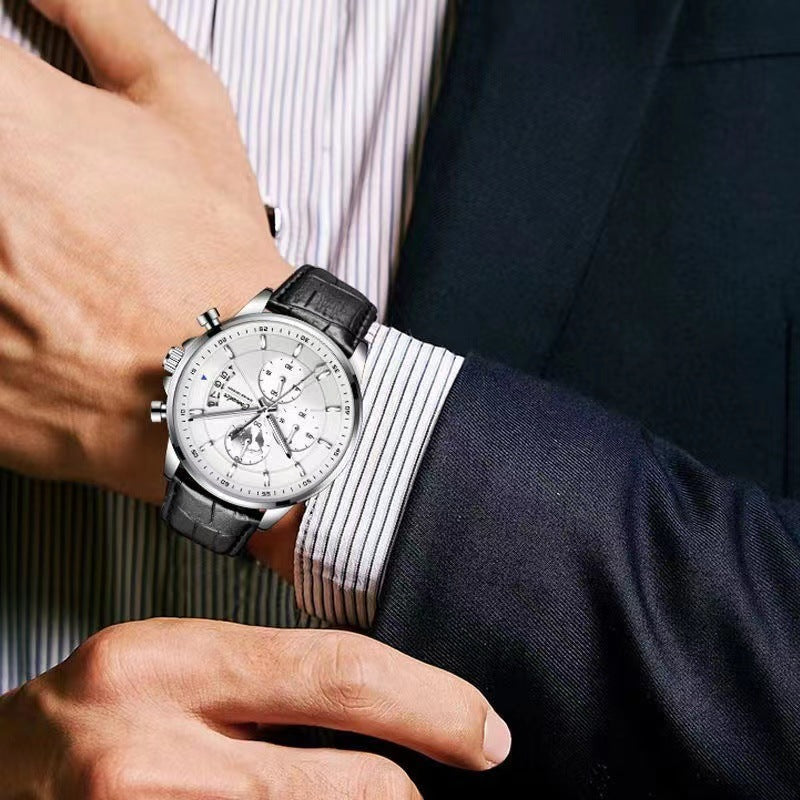 Discover the perfect blend of style and functionality with the Gobson New Business Men’s Waterproof Luminous Quartz Watch ⌚💧 — designed for modern men in Nepal 🇳🇵 who value precision and durability. This elegant timepiece features a clear luminous calendar display 📅✨, making it easy to read the time even in low light or nighttime settings.