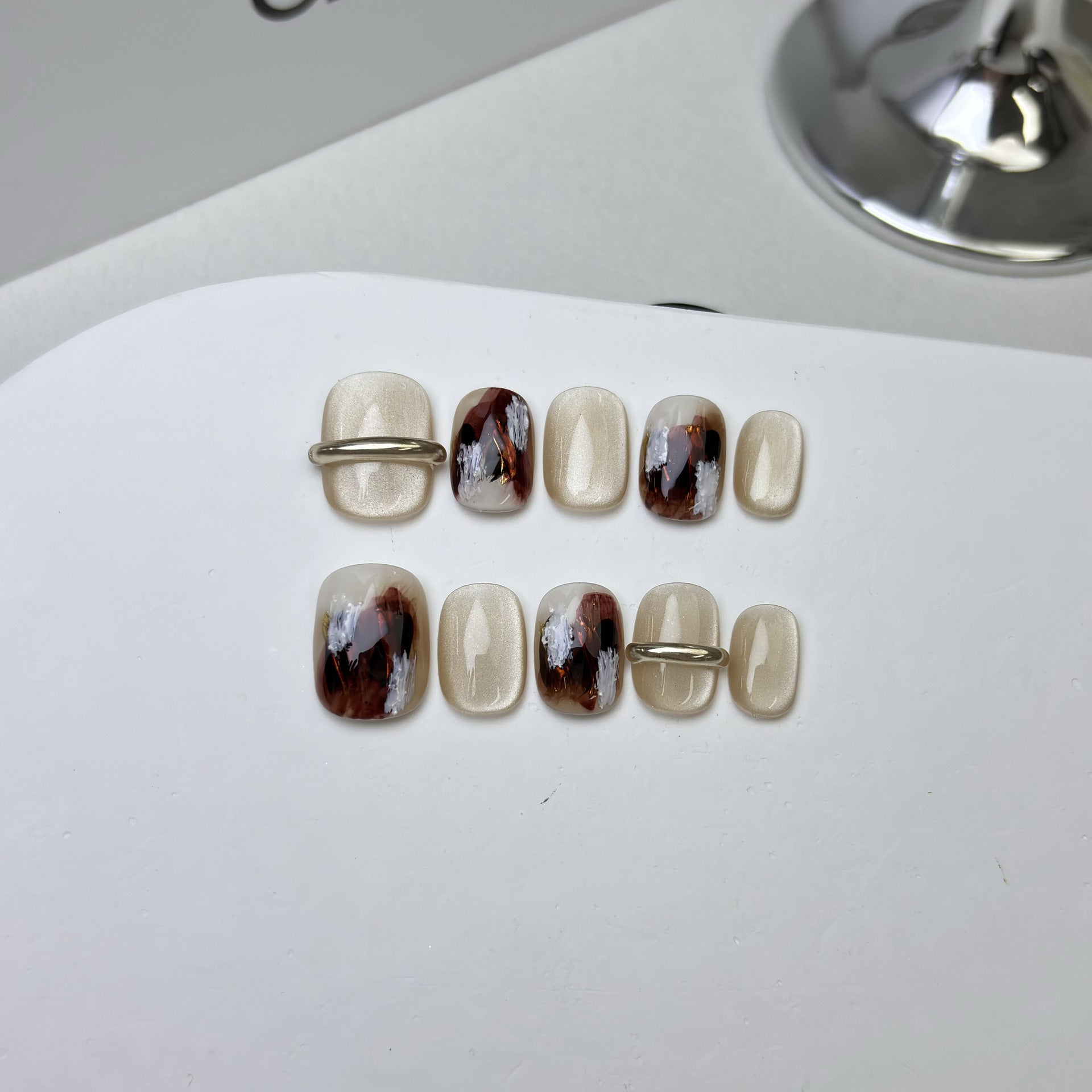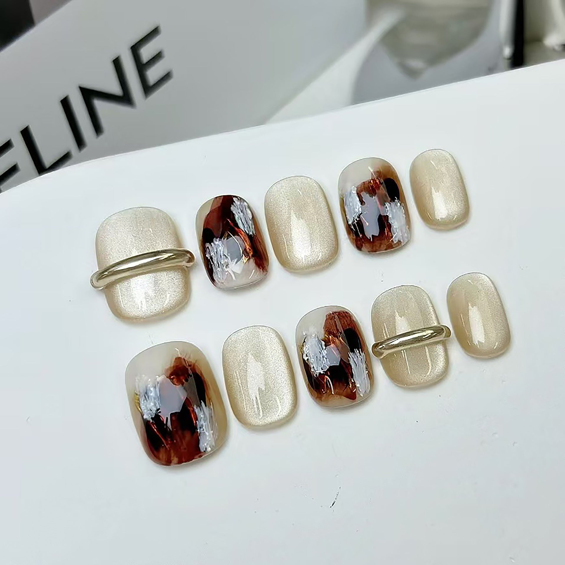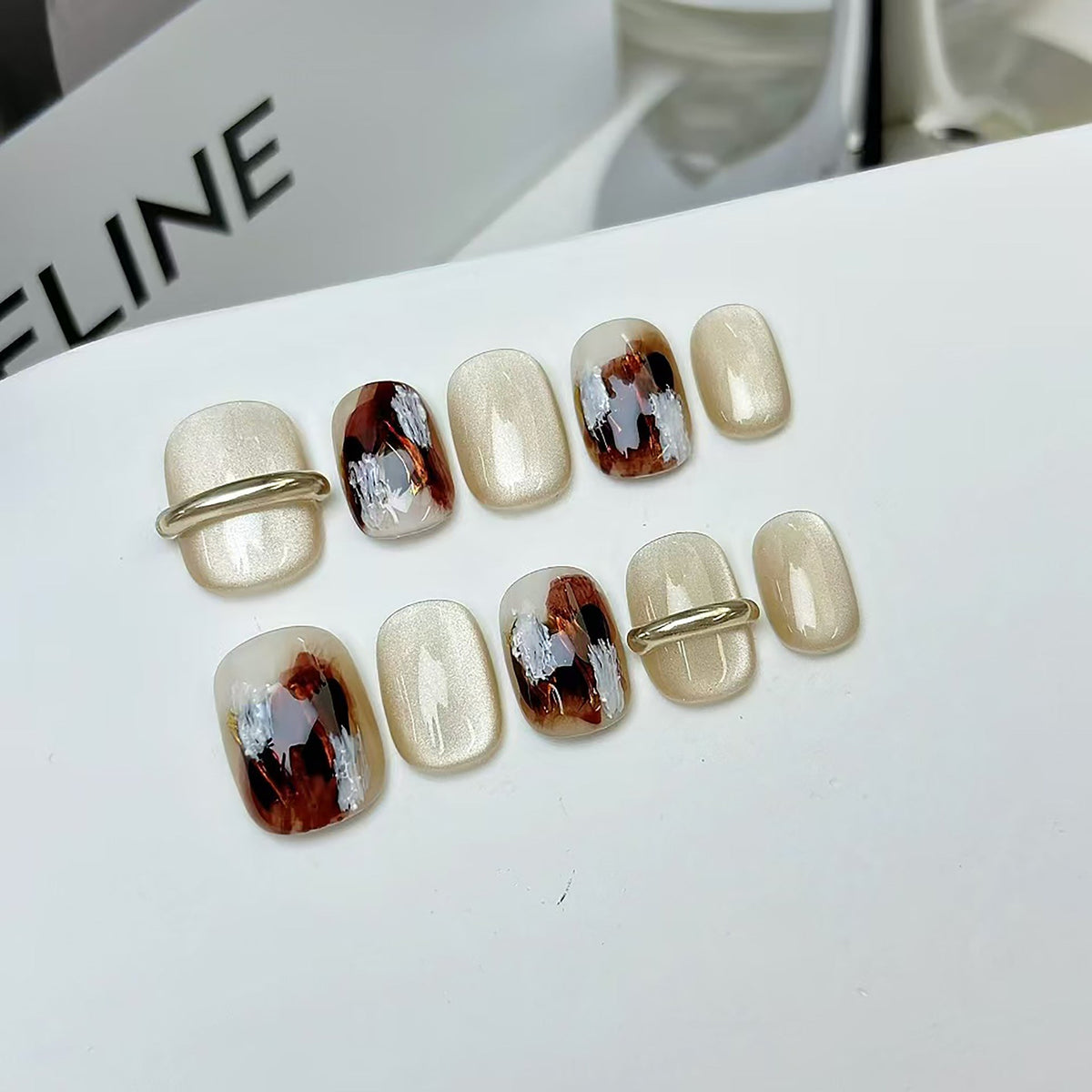 These short nails feature a luxurious gold-kneaded finish, combining shine with subtle elegance. Super wearable, quick to apply, and easy to remove โ your new go-to for daily glam or event sparkle.
