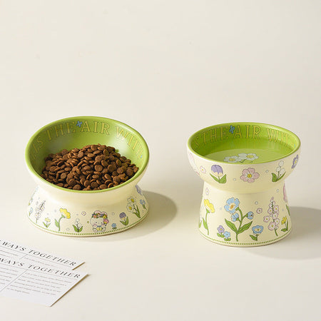 Green Rabbit Lace Ceramic Cat & Dog Bowl β Anti-Black Chin &