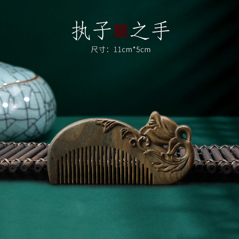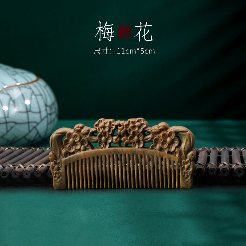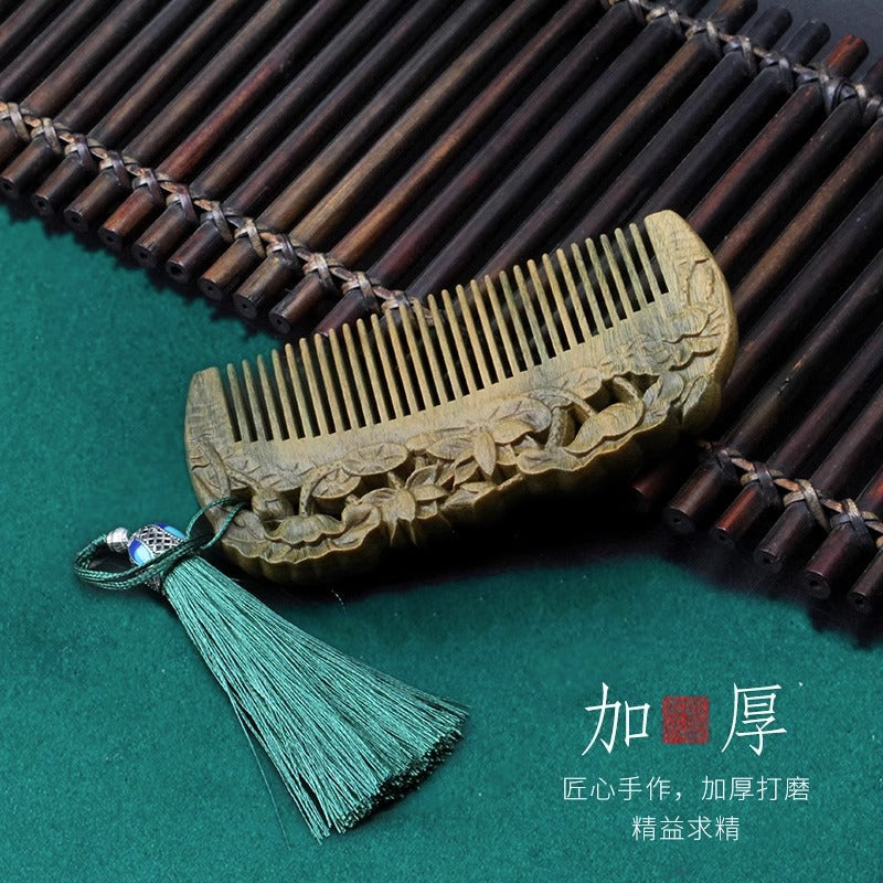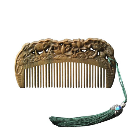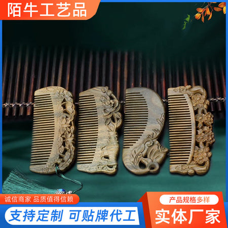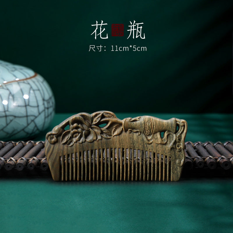 Green Sandalwood Carved Comb Retro Hollow Gift Comb
