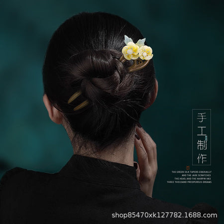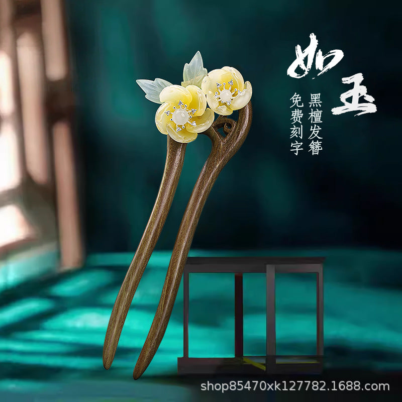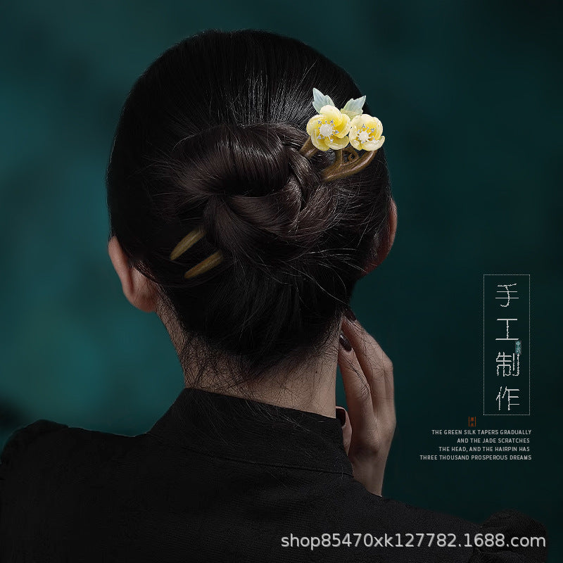 Green Sandalwood U-Shape Hairpin – Simple Retro Style