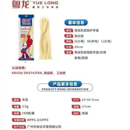 Guangdong Dragon Lengthened Thickened Latex Gloves 38–45cm