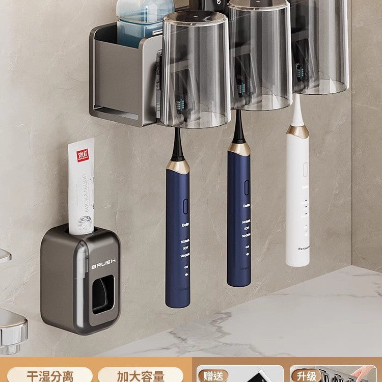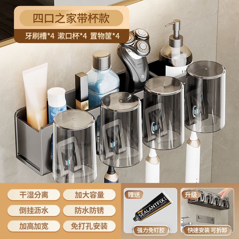 Maximize your bathroom storage with this all-in-one gun grey toothbrush and hair dryer holder. ๐ค๐จ Built for efficiency, itโs wall-mounted, punch-free, and perfect for tight spaces. The removable and washable design makes cleaning effortless, and the multi-slot setup keeps your electric toothbrush, mouthwash cup, and even a compact hair dryer organized and accessible.