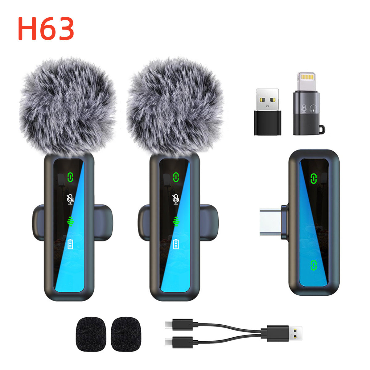 Ideal for content creators, live streamers, vloggers, and teachers, the H63 wireless lavalier microphone ensures high-quality sound in any environment. Its noise reduction and digital display features make it easy to monitor performance, while the compact wireless design provides freedom of movement. Perfect for mobile video production, live streaming, and professional recordings.