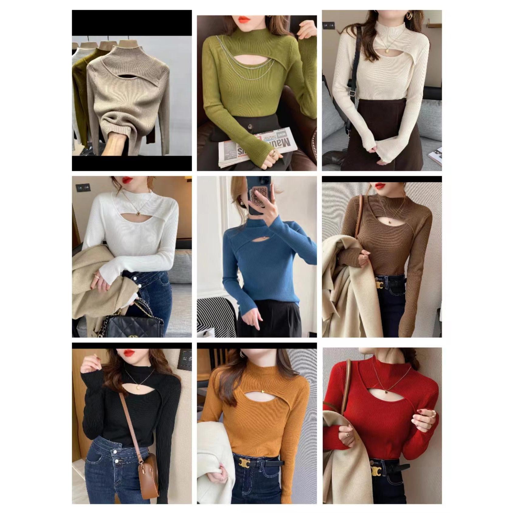 🍂🧶 Stay cozy, stylish, and on-trend this autumn and winter with our Half-Turtleneck Bottoming Shirt for Women! Designed for Nepali women who love niche fashion, this mid-collar knitted top combines warmth, comfort, and a modern cut-out design for a chic seasonal look.