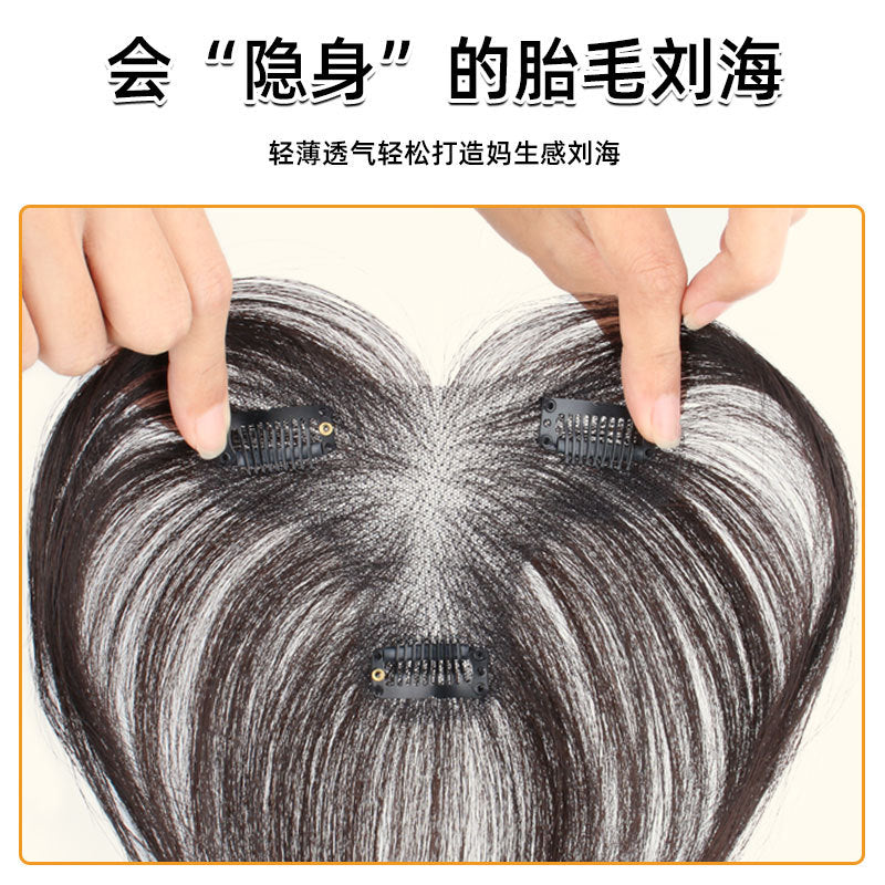Hand-Woven Real Hair Bangs Wig – Invisible Fluffy Hairline