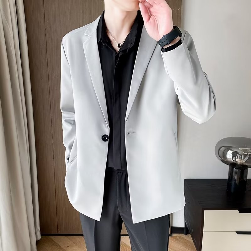 Slim-Fit Men’s Suit Jacket – Korean Trend Business Casual