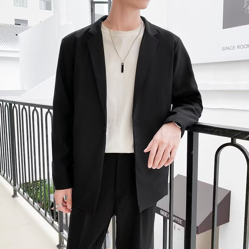 Look sharp in this slim-fit men’s suit jacket, a Korean-style fashion piece perfect for both formal and casual occasions. With long sleeves and a tailored cut, it’s designed to enhance your silhouette while keeping you comfortable.