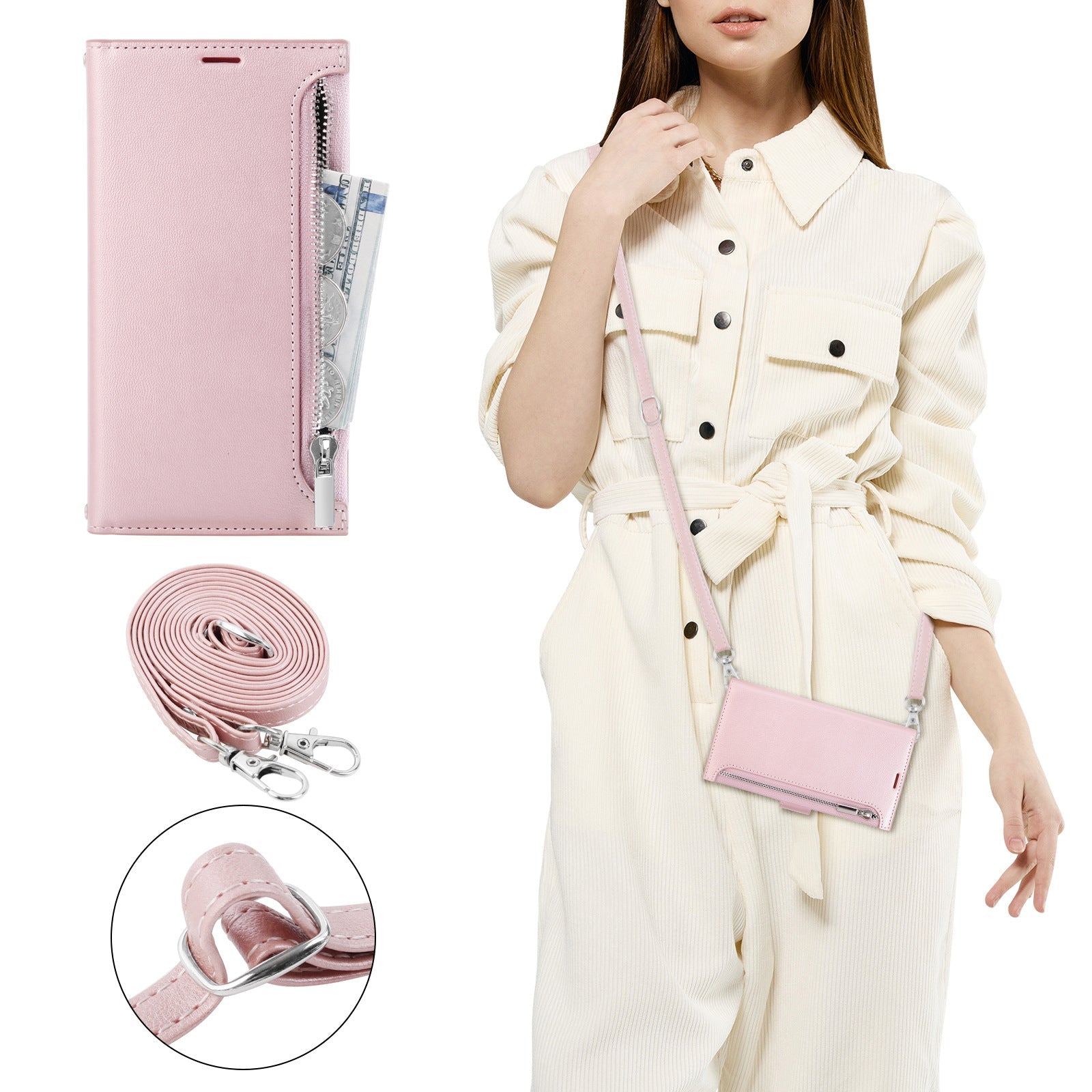 Shoulder Bag Phone Case with Zipper & Lanyard
