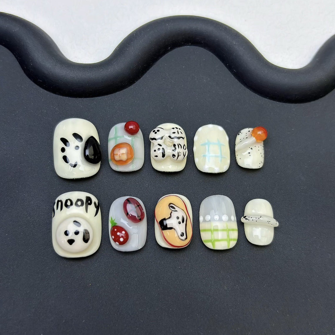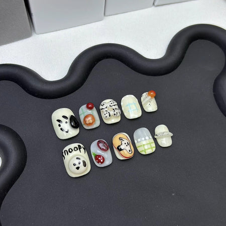 With hand-painted puppies and adorable summer designs, these short nails bring a whole vibe to your fingertips. They're lightweight, reusable, and made to add personality to any outfit โ perfect for dog lovers!