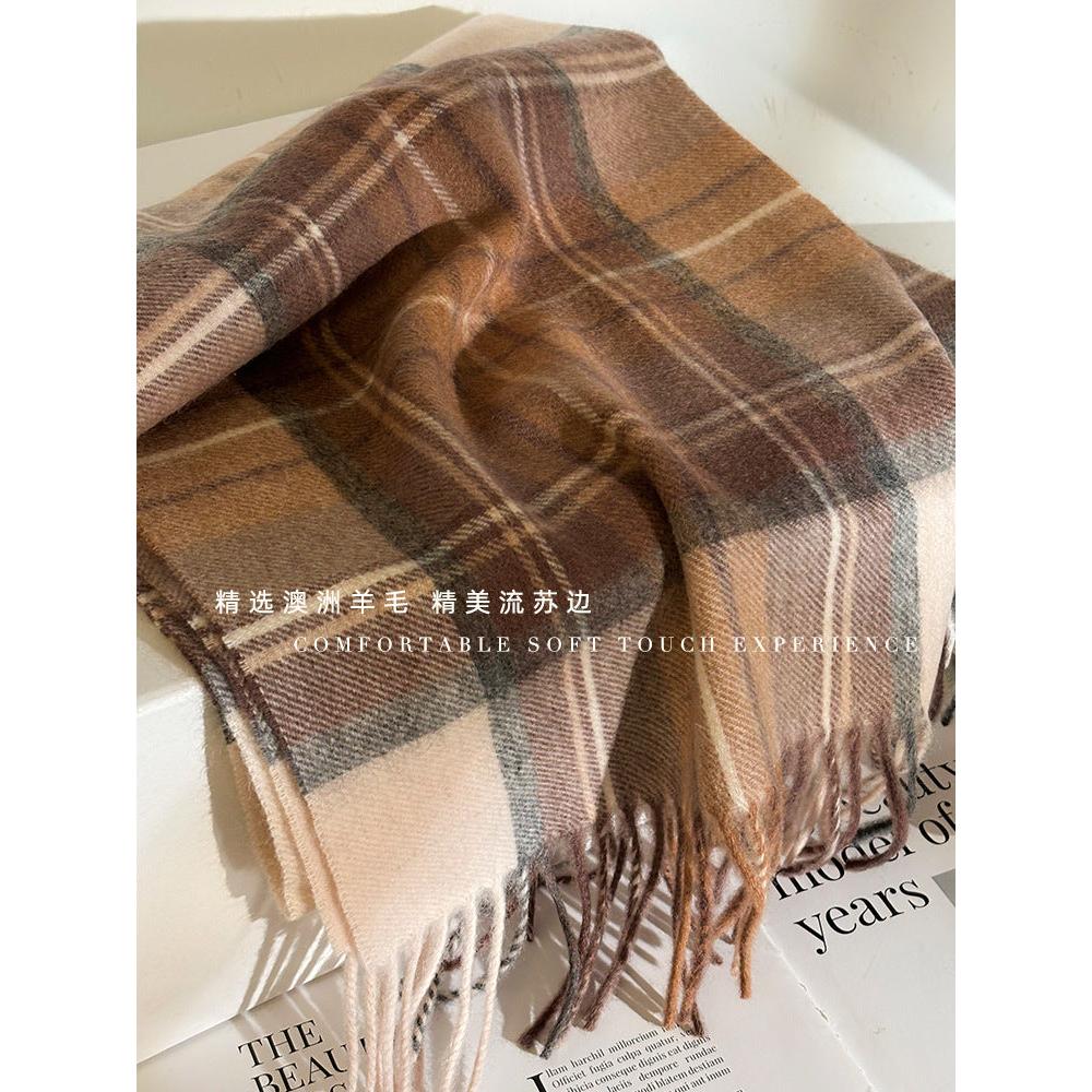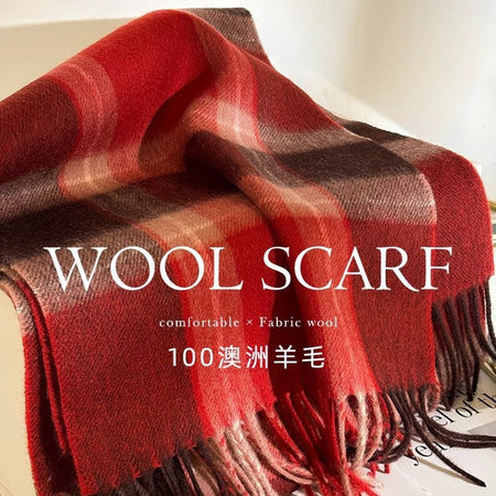 Women’s Wool Plaid Scarf Long Narrow Winter Wrap