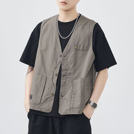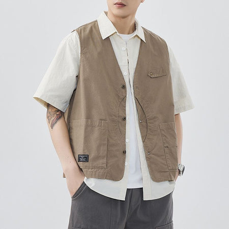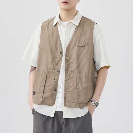 American Retro Washed Workwear Vest – Men’s Multi-Pocket