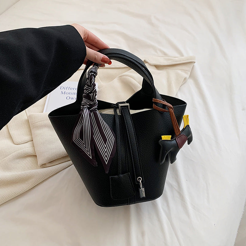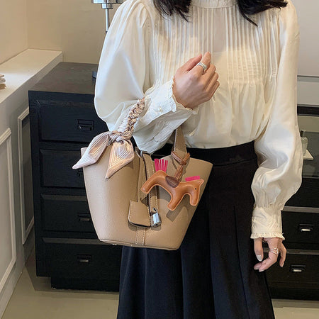 Featuring a niche lock design, this bag adds a touch of sophistication while keeping your essentials safe. Its all-match style ensures effortless pairing with any outfit—from casual streetwear to elegant office attire. The bucket shape offers spacious storage while maintaining a modern, stylish silhouette perfect for urban life in Kathmandu or outings in Pokhara.