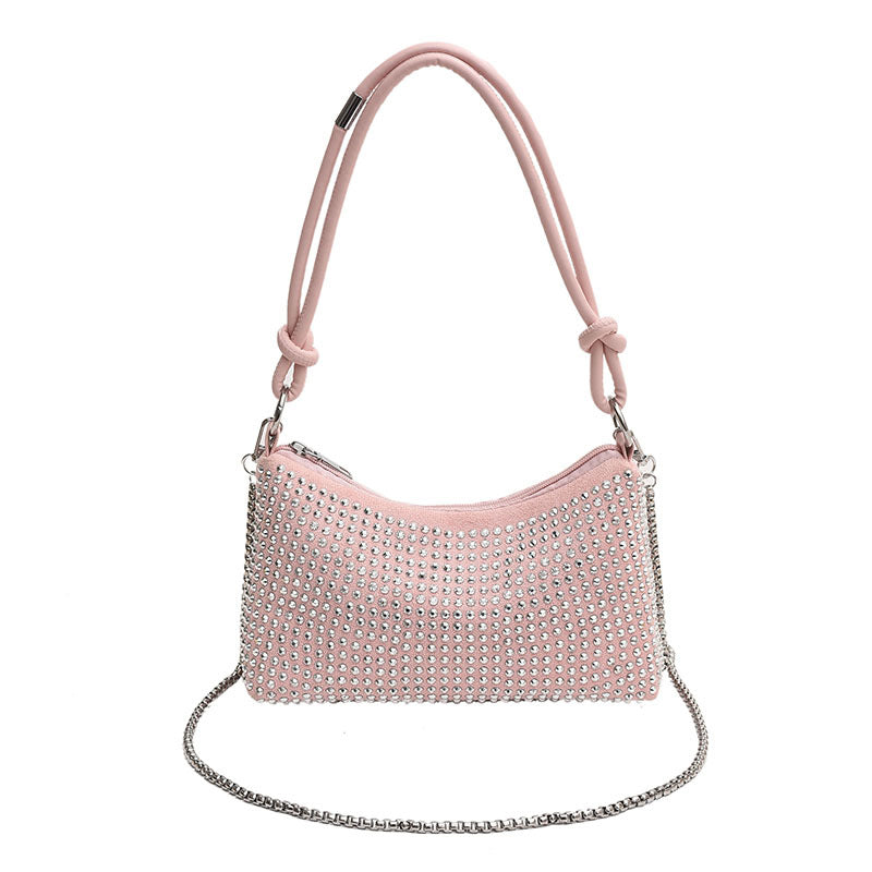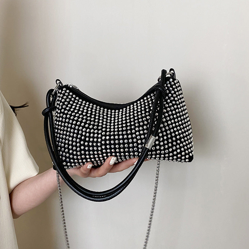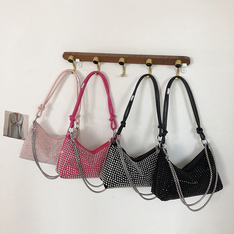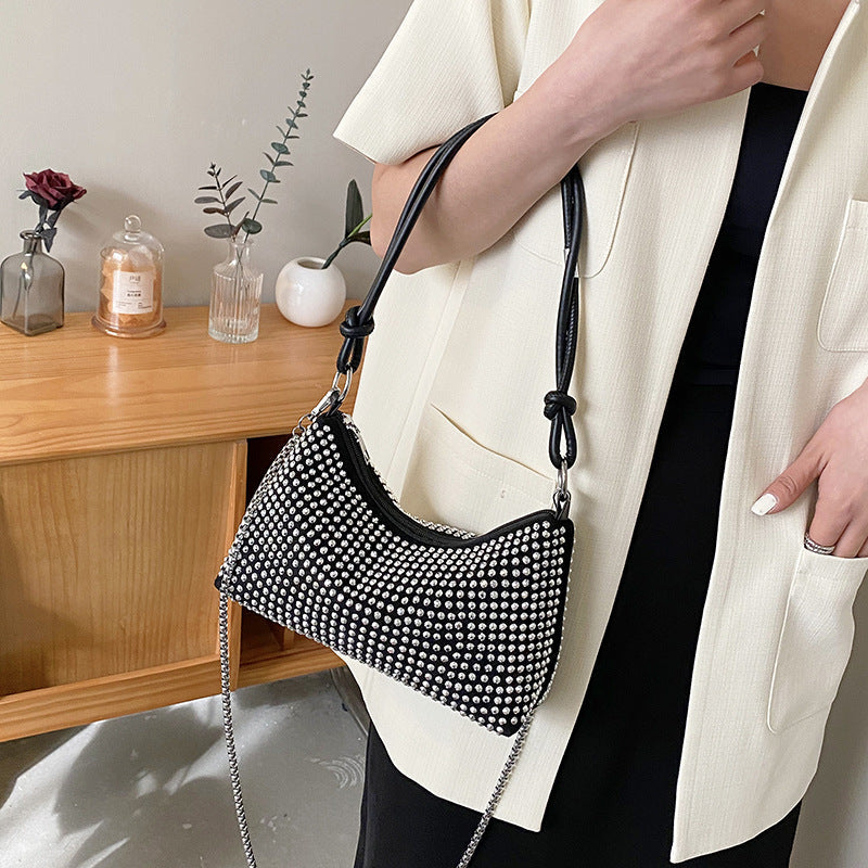 Add sparkle to your evening look with this high-grade rhinestone underarm shoulder bag! โจ๐ Featuring stunning diamond-encrusted details and a flash knot design, this 2023 luxury handbag is the perfect accessory for your next formal event or night out.