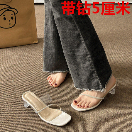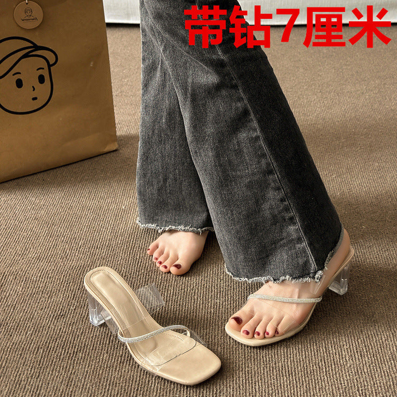 Crystal Thick Heel High Heels for Women – Elegant Style