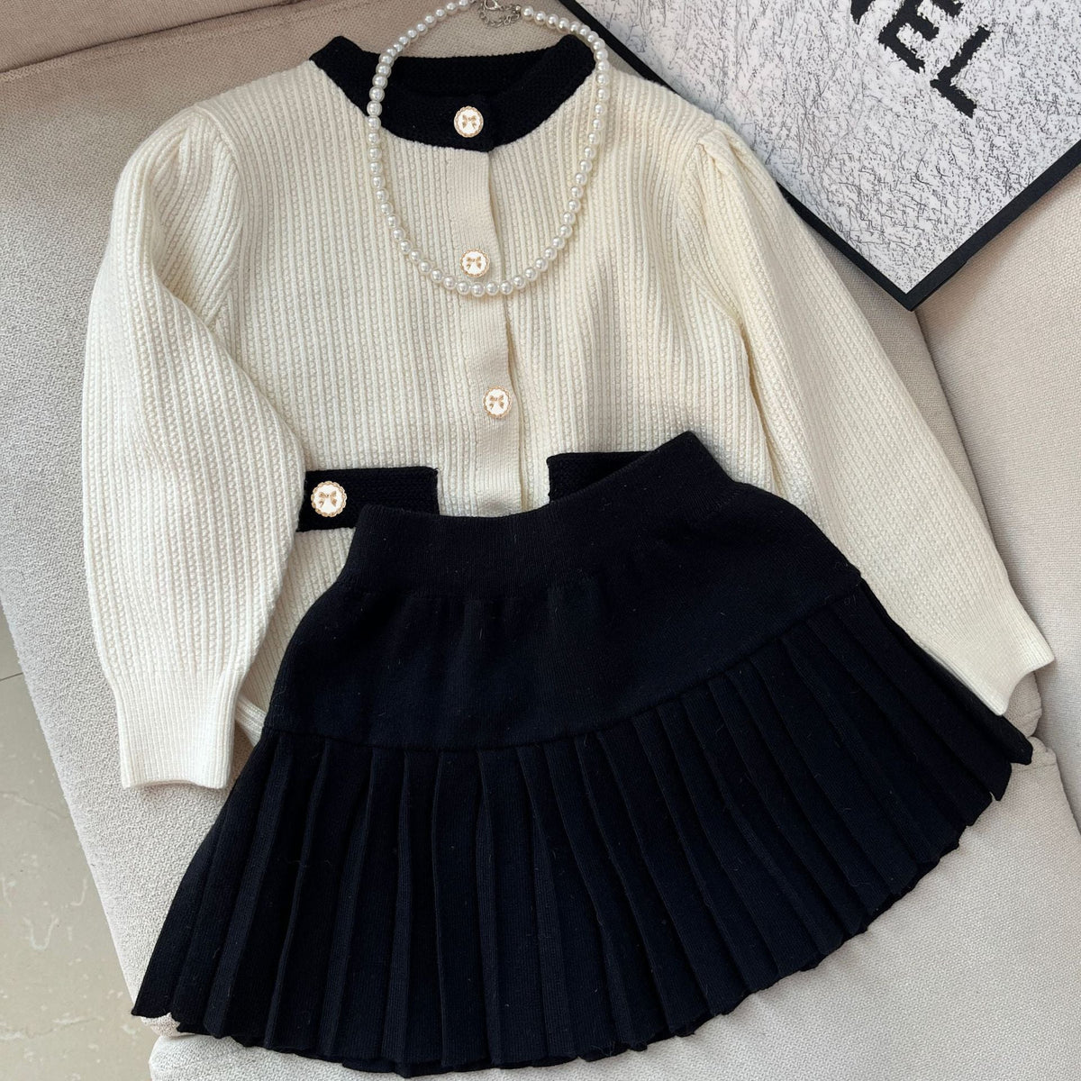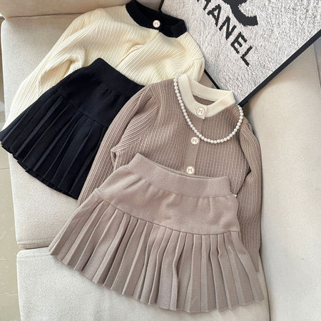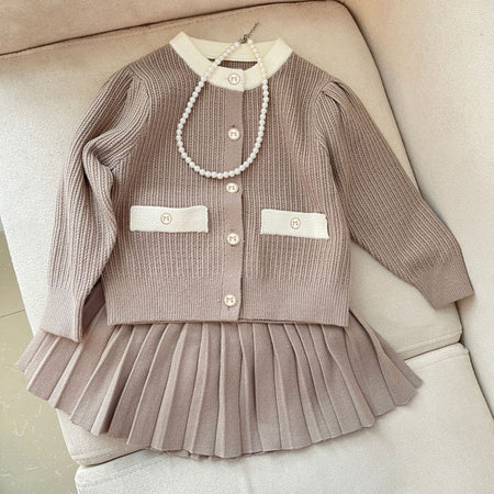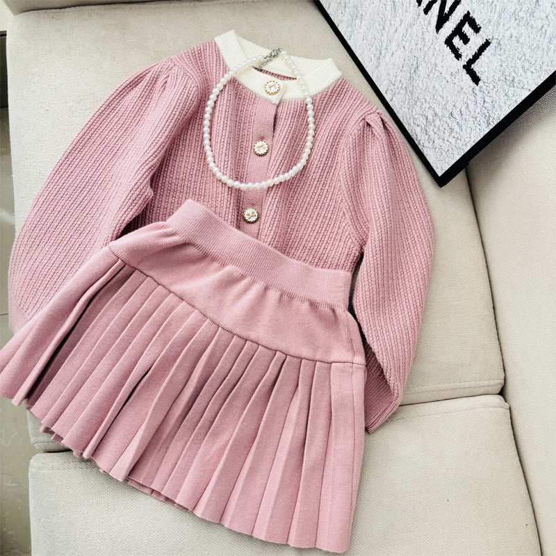 Girls’ Autumn Knitted Sweater & Skirt Two-Piece Set
