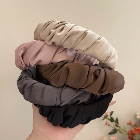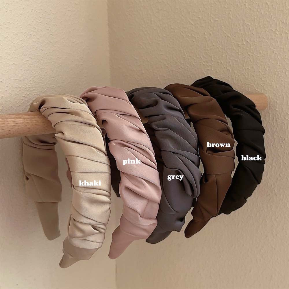 ๐ Make room for volume! This pleated satin crown headband adds class and comfort in one wide stroke.