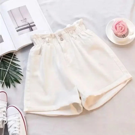 Stay cool and confident this season with these Plus Size High Waist Denim Shorts! 💙 Designed for chubby girls who love comfort and style, these Korean-inspired A-line shorts offer a flattering, loose fit that enhances your shape without clinging. The elastic waistband provides extra comfort and flexibility, while the curled hem and wide leg cut give you that casual, slimming “Joker” style that goes with anything! 🌼