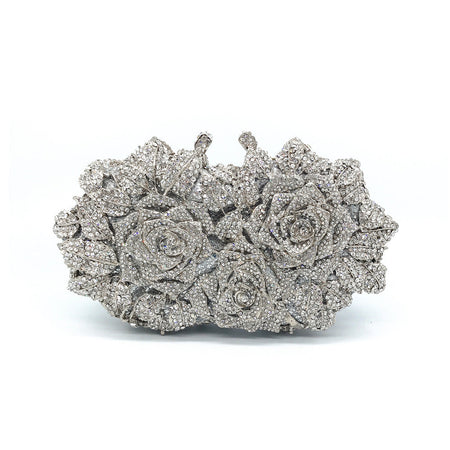πΉ Bring on the bloom! This rose-inspired diamond clutch stuns with its hollow metal shell and luxe sparkle.