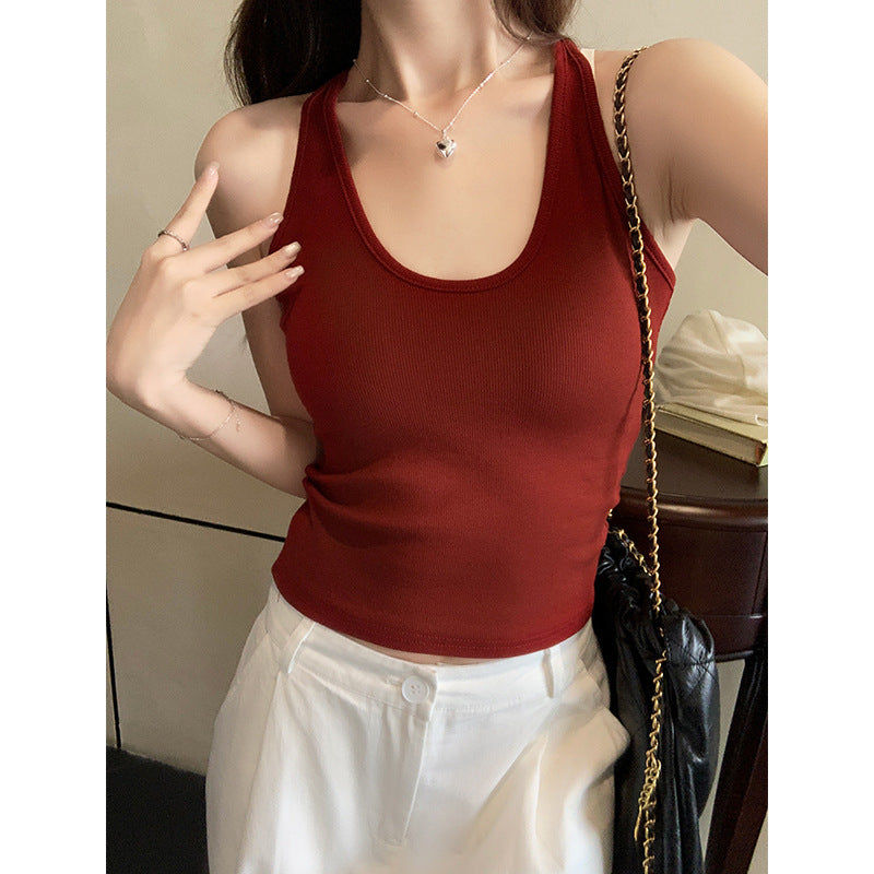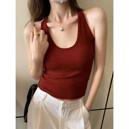 Add a bold touch to your wardrobe with this Hong Kong-style sexy red vest. Designed for summer and the early autumn season, this slim-fit vest features a flattering U-neck sling design and a built-in chest pad for added support. Perfect as an outer wear or inner wear, this versatile piece is ideal for layering or wearing on its own for a chic, trendy look. 🔥