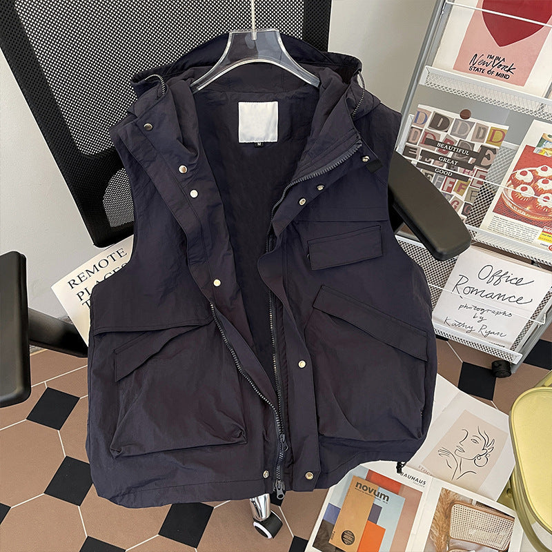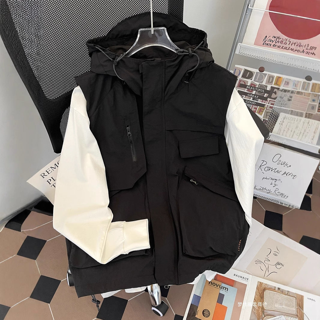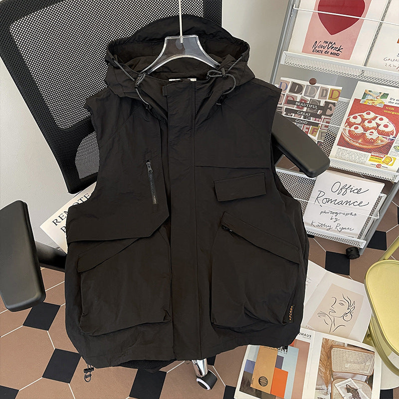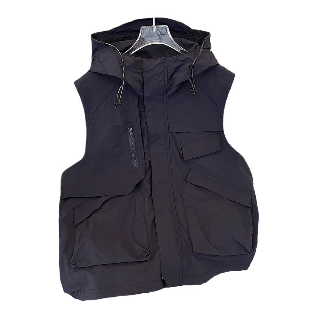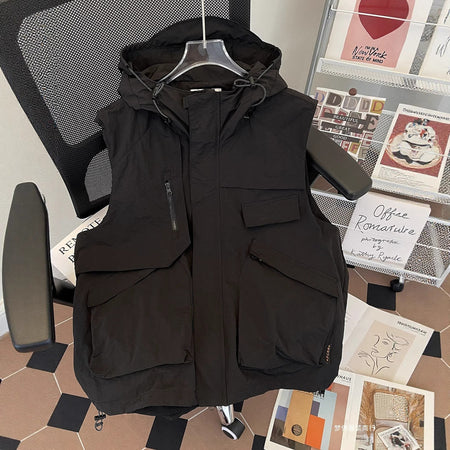 Men’s Hooded Work Vest – Summer Casual Trendy Sleeveless Jacket
