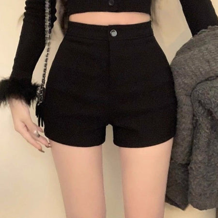 Elevate your outfit game with these high-waist black shorts 🖤. Sleek, elastic, and body-hugging – they're made for girls who slay all day 🔥.