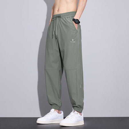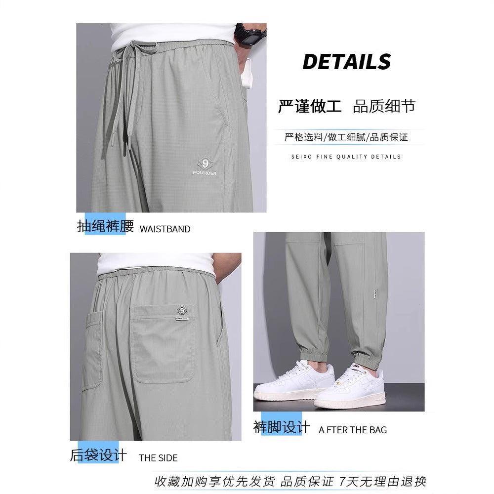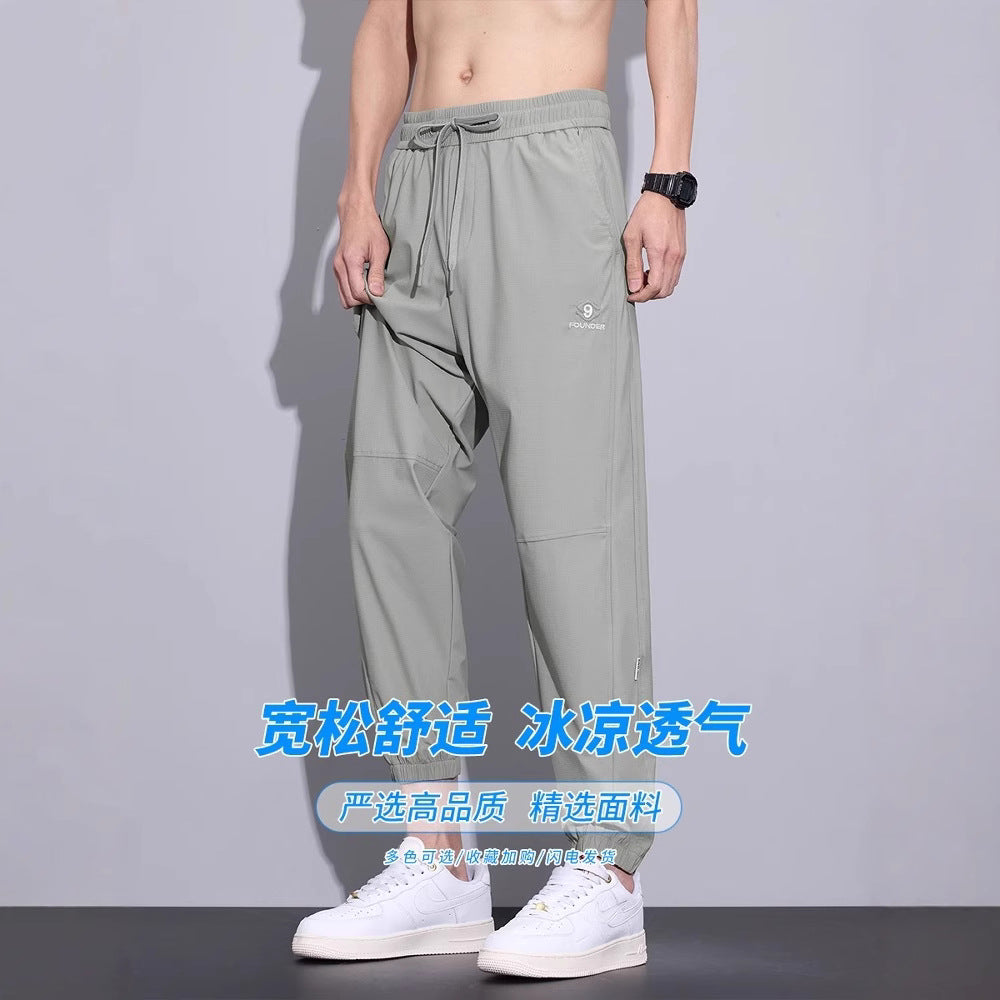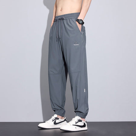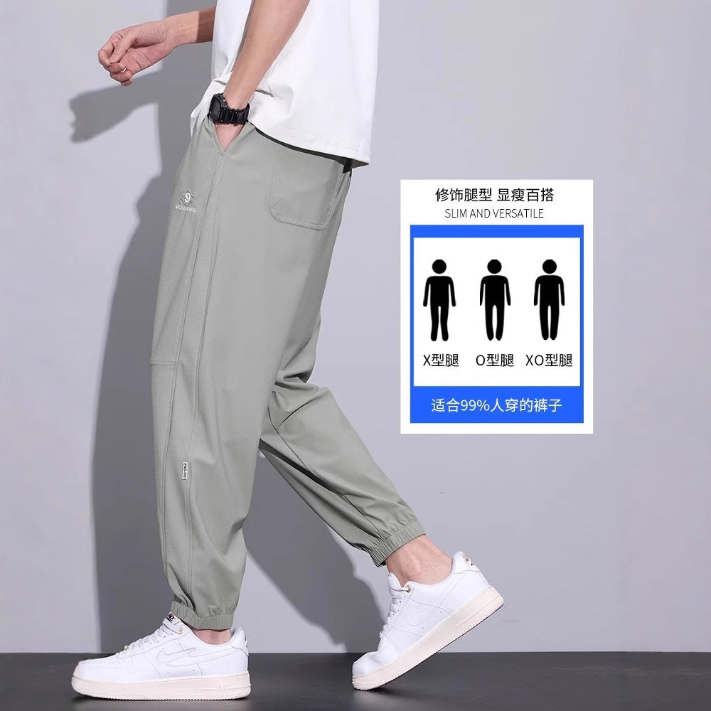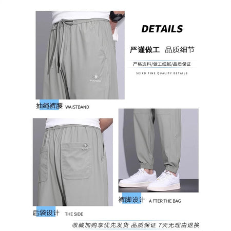 Stay cool in warm weather with these summer ice silk activewear pants for men, designed with a quick-drying fabric and cropped sporty silhouette.
