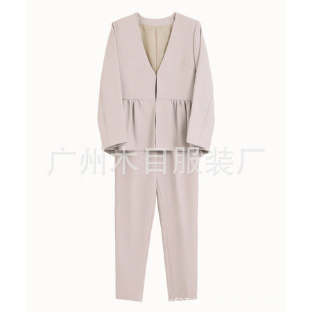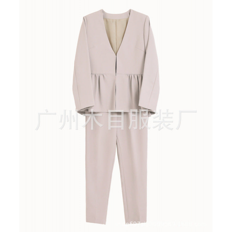Japanese V-Neck Stitching Pants Suit