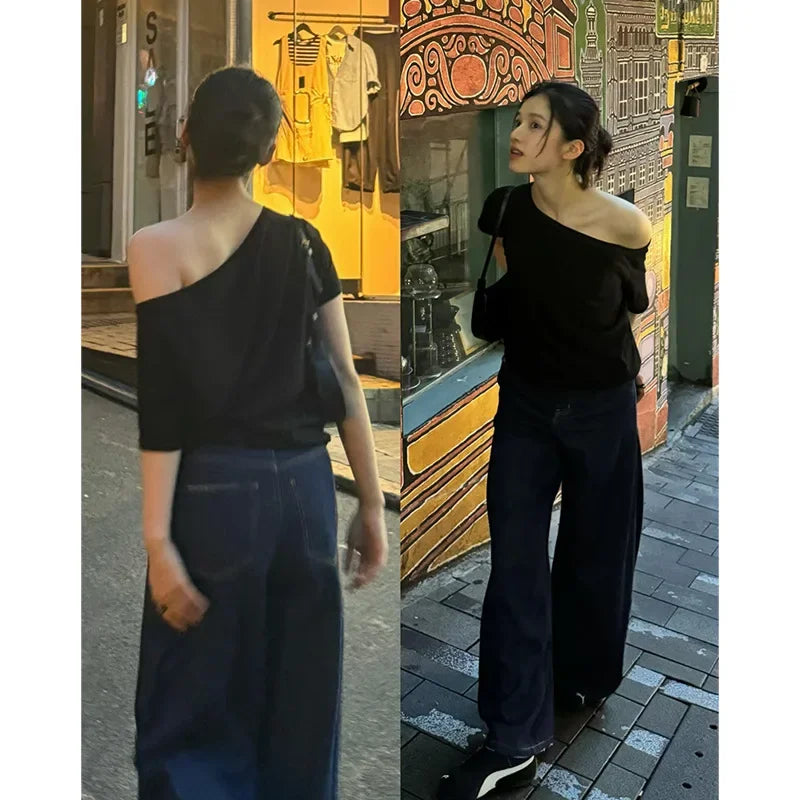 One-Shoulder Short Sleeve Tee β Star-Inspired Style
