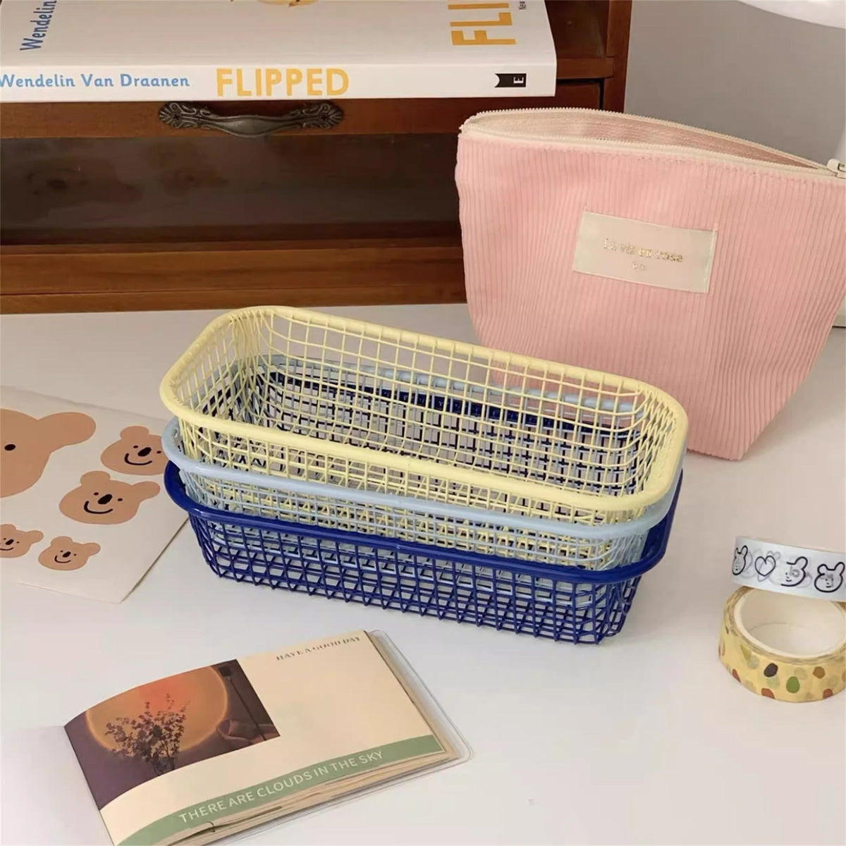 Organize your workspace with style using this INS iron desktop storage basket, designed for students and professionals alike. With its sleek wire-frame design, this compact basket keeps your small items neatly arranged while adding a modern touch to your desk.