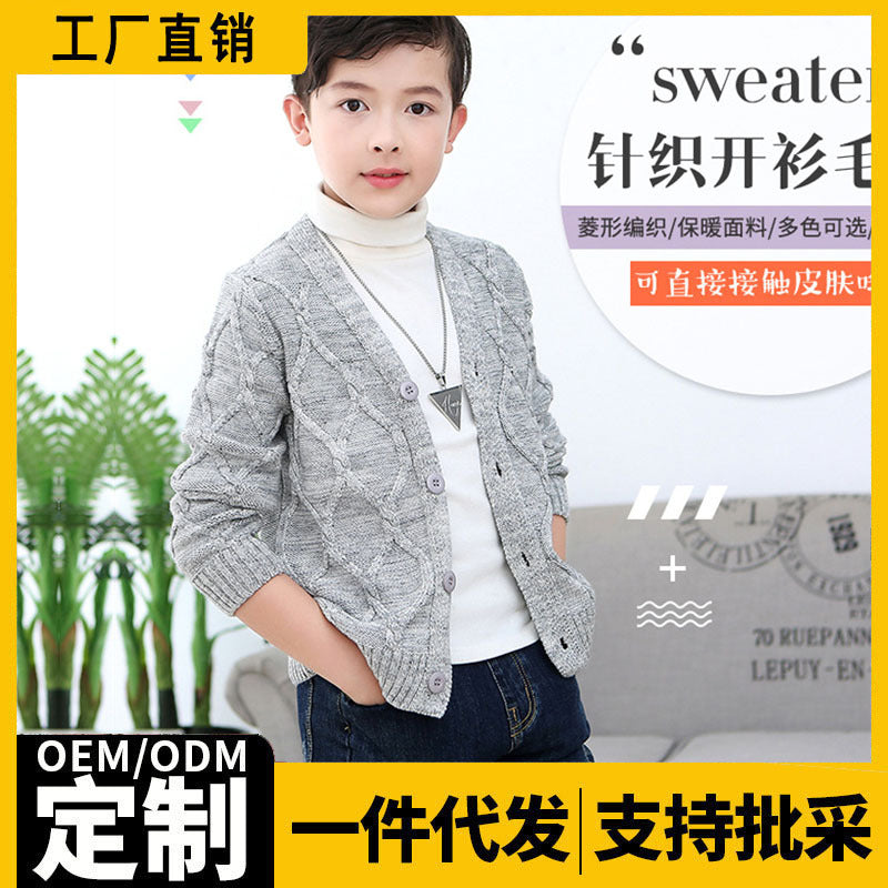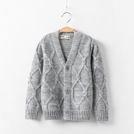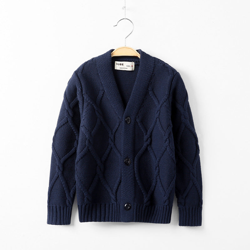 Kids’ V-Neck Plus Velvet Thickened Knitted Cardigan