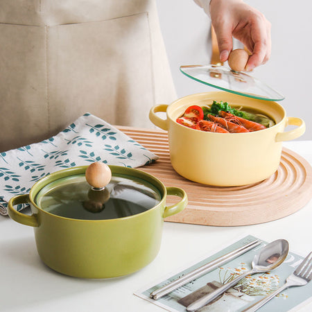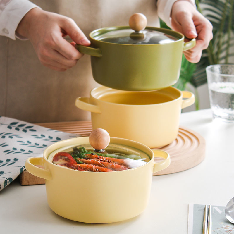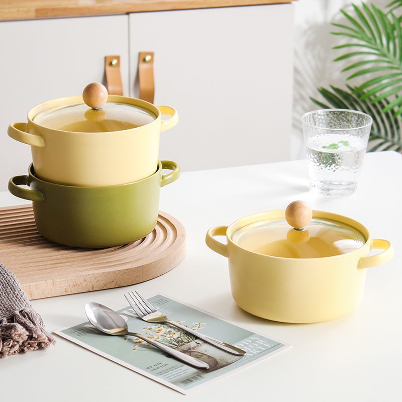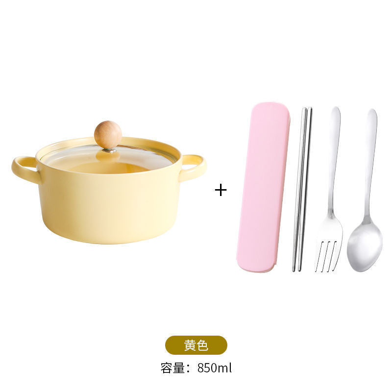 Ins Style Ceramic Noodle Bowl with Lid & Handles