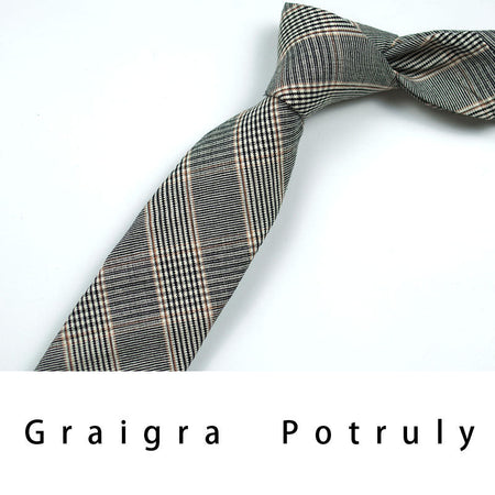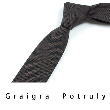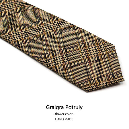 INSTOCK-6cm Houndstooth Curry Gray Tie – Vintage Casual Look