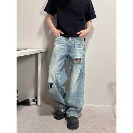 INSTOCK-Distressed Ripped Jeans American Street Loose Fit