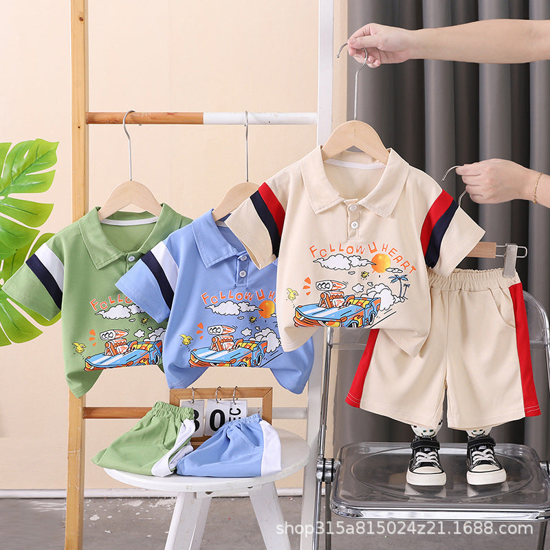 INSTOCK-Boys' Cartoon Car Polo Set β Comfy Summer Outfit 2024