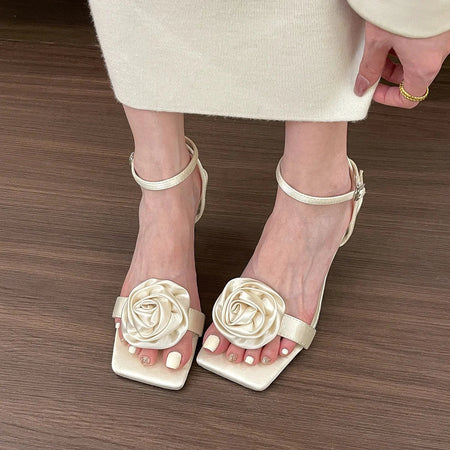 INSTOCK-Cream Rose Flower Heels β Chic Party Footwear