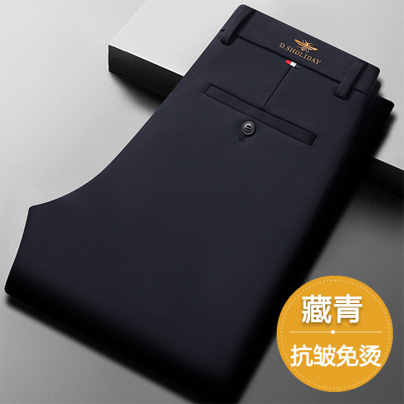 üëî Elevate your wardrobe with these high-waist business casual trousers for men, perfect for spring and autumn. The straight-leg fit offers a classic, polished look while maintaining comfort. Made from polyester with micro-bounce elasticity, these trousers provide durability and a wrinkle-free experience. Ideal for middle-aged men, the solid black, navy, and grey options suit both business and casual settings. Whether for a meeting or a weekend outing, these versatile pants ensure you stay stylish and comfortable. üíº