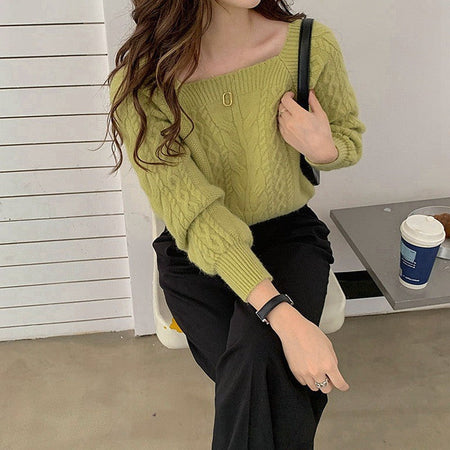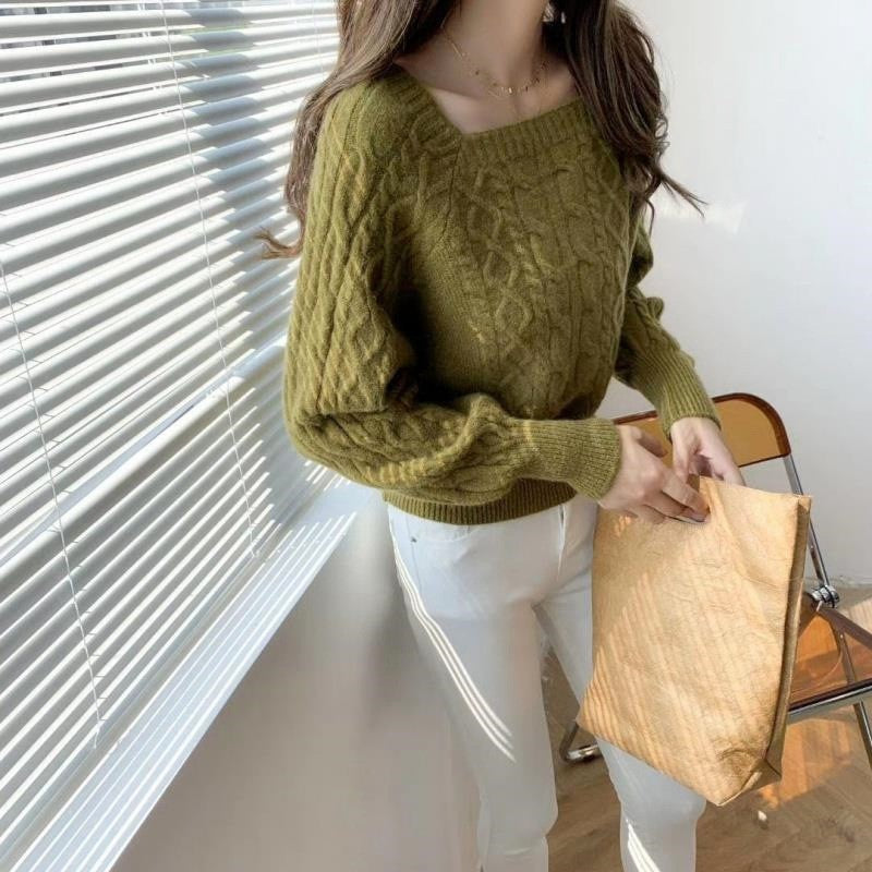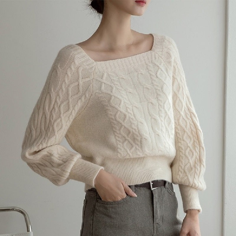 INSTOCK-Elegant Korean Lantern Sleeve Knit Sweater for Women