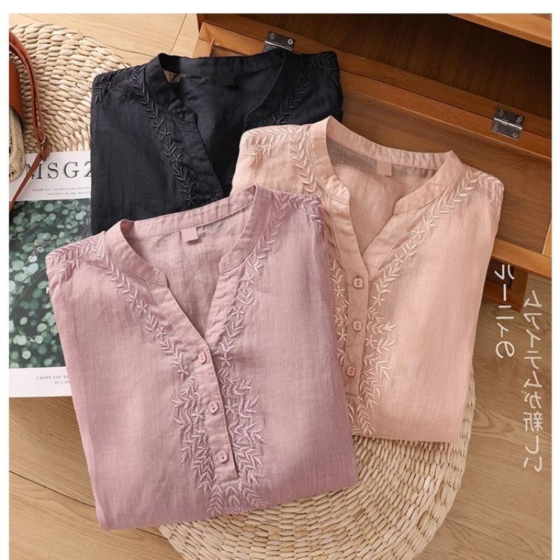 Stay cool and effortlessly stylish with this Cotton Linen Embroidered V-Neck Shirt for Women β a perfect pick for the summer season! βοΈπ Made from a breathable cotton-linen blend, this top is soft, lightweight, and gentle on the skin β ideal for hot and humid days. πΏπ¨