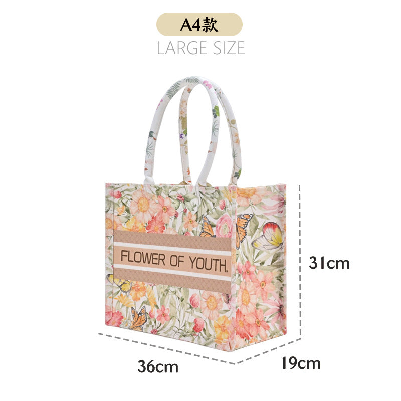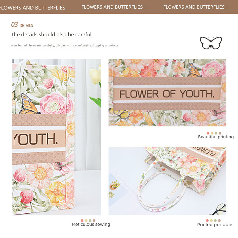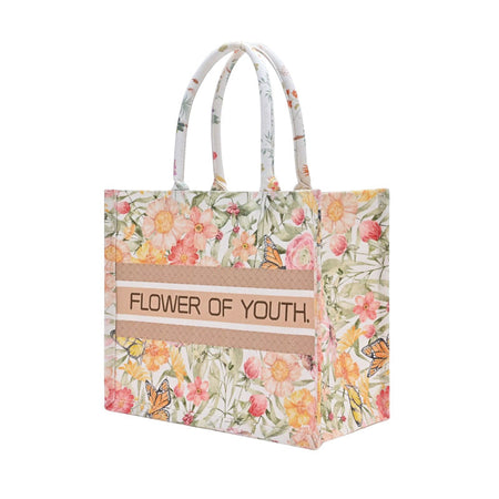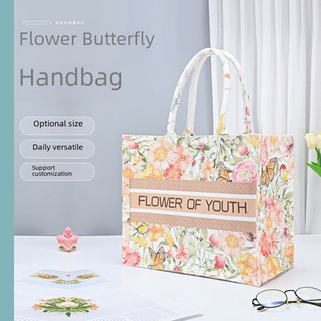 INSTOCK-Floral Butterfly Canvas Tote – Large Gift Handbag
