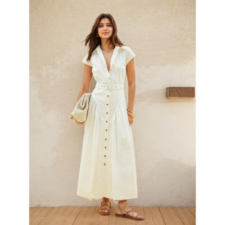 INSTOCK-French Lapel Single-Breasted Slim-Fit Long Dress ā Summer