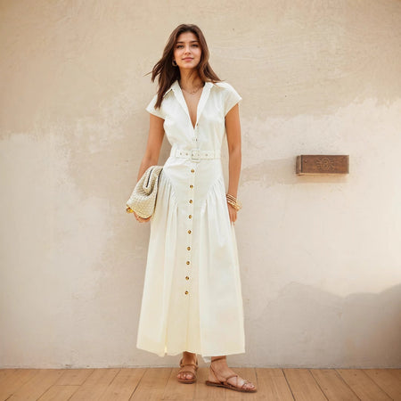 Step into summer with grace and sophistication in our French Lapel Single-Breasted Slim-Fit Long Dress. Designed to flatter every figure, this dress offers a slimming effect while keeping you cool and chic.