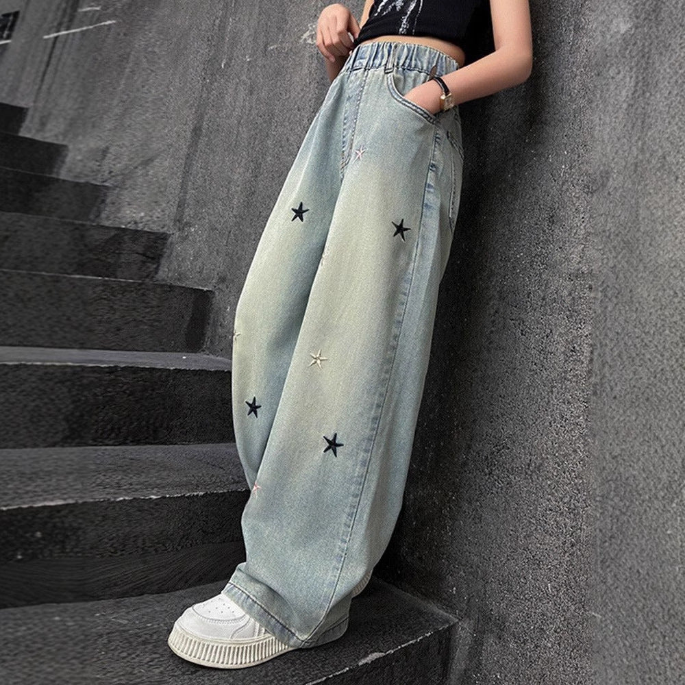 INSTOCK-Girls’ Jeans Loose Straight Wide Leg Pants Spring Autumn