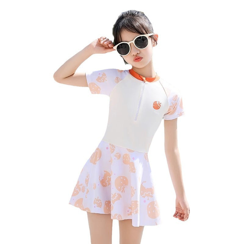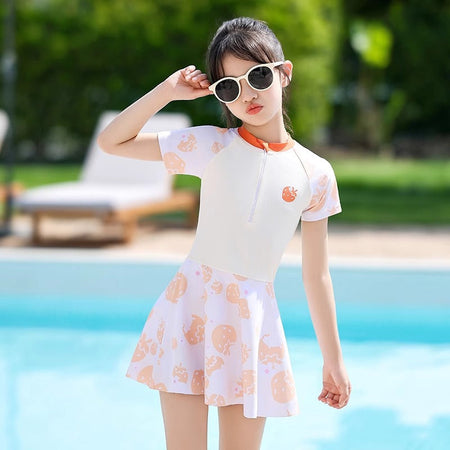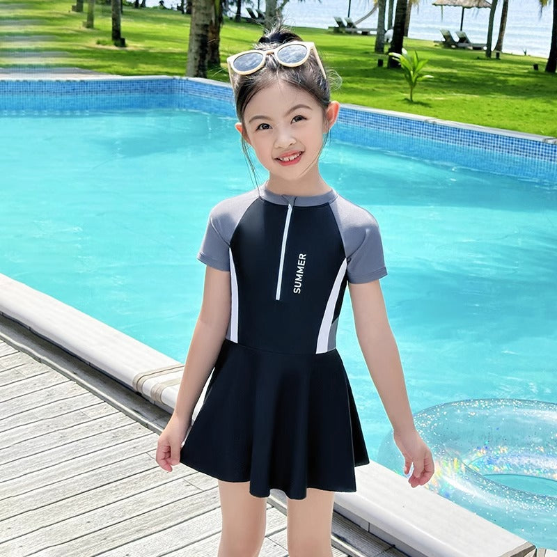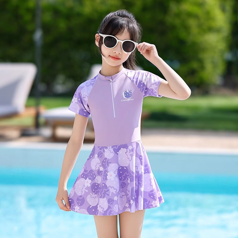 Featuring a charming dress-style design, it offers full coverage with a soft, elegant look that girls love. The stretchy, breathable fabric ensures all-day comfort, while the modest cut makes it ideal for school activities or family outings 🌸🏊♀️
