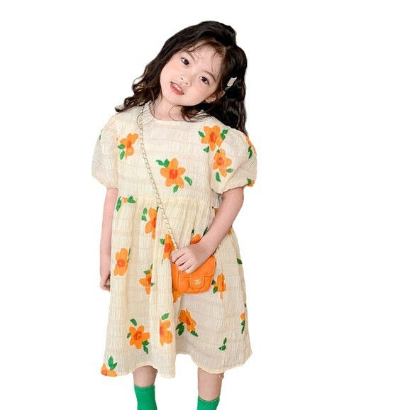 INSTOCK-Girls’ Summer Floral Dress – 2024 Princess Style