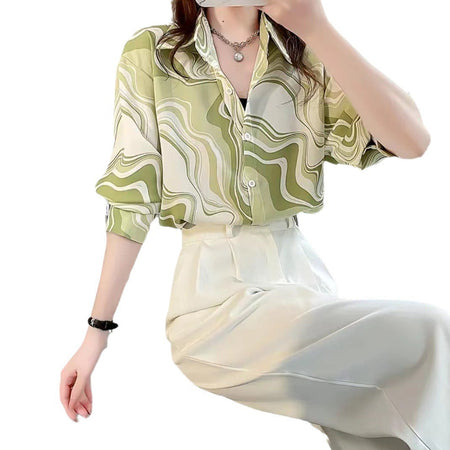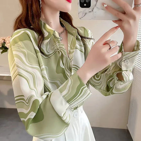 The green striped pattern adds a pop of color to your everyday look, while the light mature style offers a sophisticated touch to casual or semi-formal outfits. Perfect for autumn, this shirt can be paired with skirts, trousers, or jeans for a versatile, trendy look.