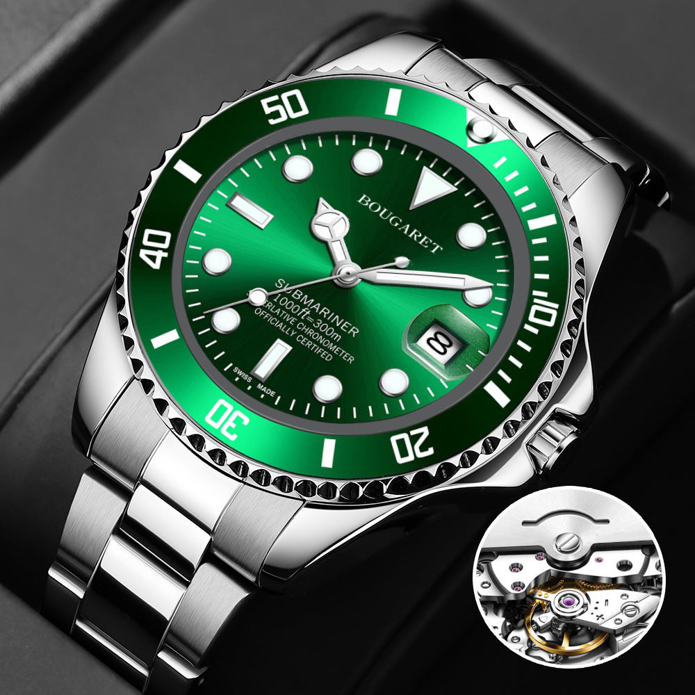 ⚓ Dive into elegance with this Green Submariner Waterproof Sports Watch – a fully automatic, mechanical masterpiece for the modern man. 💼💪 Designed with a luminous calendar dial, this bold timepiece offers both form and function, perfect for those who demand durability and distinction. ⌚🌊