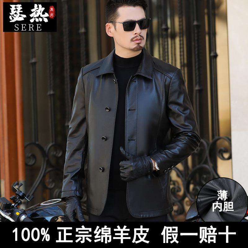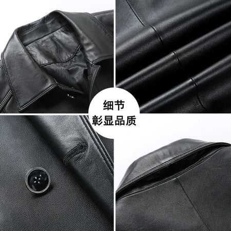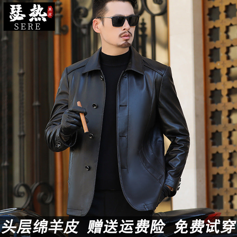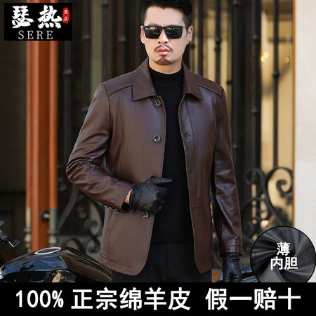Stay stylish and warm with the Haining Genuine Sheepskin Men's Leather Jacket, crafted from first-layer premium leather for durability and a sophisticated look. Designed for middle-aged and elderly men, this jacket combines comfort, classic style, and practicality, making it the perfect dad-friendly autumn and winter outerwear.