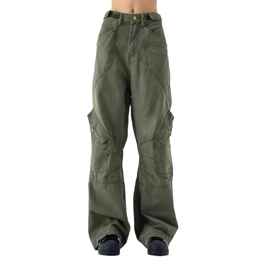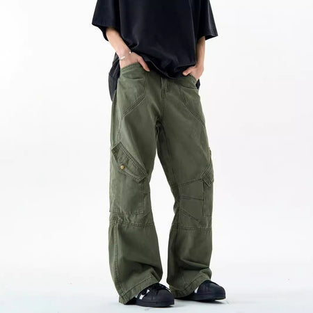 Step into rugged style with these heavy industry cargo pants for men, designed with multiple flap pockets and a wide-leg silhouette. Perfect for 2024 streetwear trends, they balance function and American retro aesthetics.
