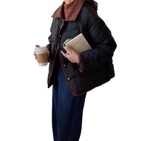 Crafted from premium down cotton padding, it’s soft, insulating, and perfect for keeping warm without feeling bulky. The lapel collar adds a sophisticated touch, while the short, casual silhouette allows easy pairing with jeans, skirts, or casual pants for a polished look. Ideal for daily wear, city strolls, or casual meetups, this coat delivers both comfort and style. 🌟